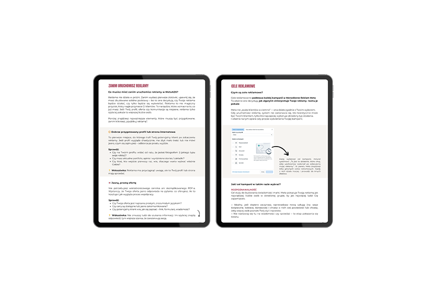 Ten e-book to Twoje pierwsze, konkretne narzędzie, które pozwoli Ci wejść w świat Meta Ads bez stresu, bez chaosu i bez marnowania pieniędzy.